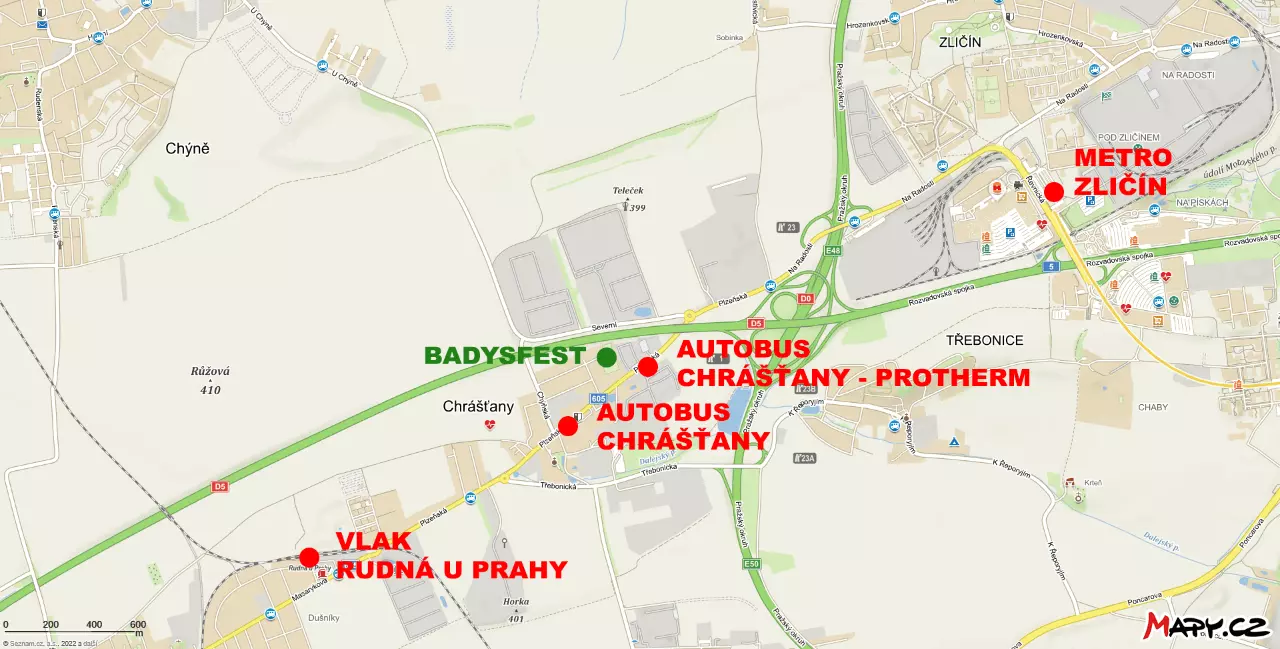 BADYSFEST se nachází téměř ve prostředku obce Chrášťany.